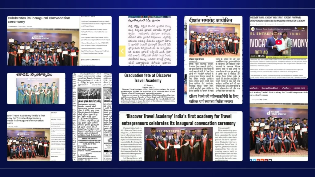 Gallery & Media Coverage Explore our journey through workshops, events, social medias, and industry recognition. Moments at DTA - First Convocation Ceremony Special Guests Convocation Moments Students Moments Media Coverage Social Media Profiles Instagram Youtube discoverwithkarthik CEO - @triumph.holidays Entrepreneur l Traveller l Trainer Contact 95003 95008 for Best Holiday deals Fill this form for your Holiday Enquiry 👇 🌊🚣♂️ River Rafting in Coorg – A Once in a Lifetim 💔 Honeymoon in Maldives gone wrong! A small mistak 📌 Travel Mistakes – Part 2 🌍✈️ From random taxi tr 🇸🇬 What to See in Singapore – All in One Reel! Fr ✈️ Travel Mistakes Part 1 – Are You Doing These? 📌 🇮🇩 Planning a Bali Trip? Watch this 60-sec guide b ✈️ 3 emergency codes pilots never want to use — bu 🚆 Train Ticket Bookers – URGENT Update! If you re Load More Follow on Instagram Discover with Karthik Hello i am Karthik Ramesh, a passionate Travel Entrepreneur, Founder of Triumph Holidays. I share travel facts, vlogs , destination information and everything related to travel. I love to travel , make new friends and a foodie.